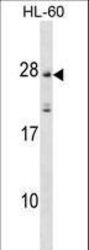 - MS4A5 Antibody western blot of HL-60 cell line lysates (35 ug/lane). The MS4A5 antibody detected the MS4A5 protein (arrow).