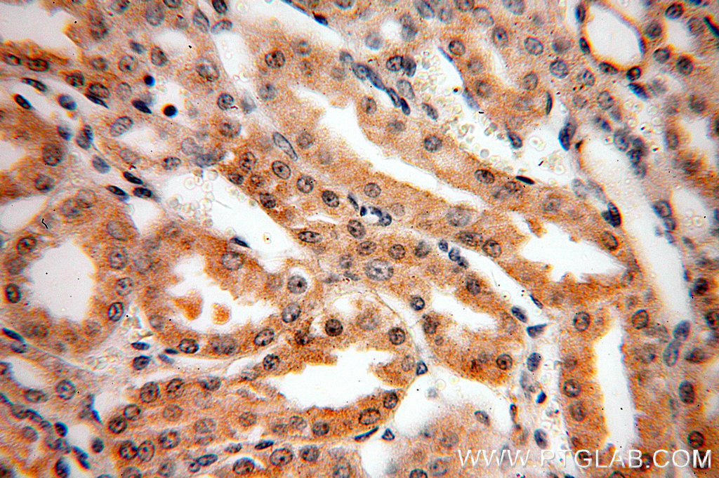 - Immunohistochemical of paraffin-embedded human kidney using 18840-1-AP(CIB4 antibody) at dilution of 1:50 (under 10x lens)