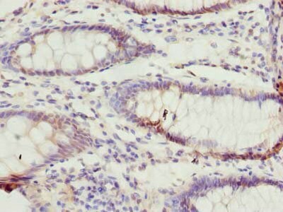 - Immunocytochemical analysis of paraffin-embeded TTC38 in human colon cancer using a TTC38 Polyclonal antibody (Product # PA5-112983) at a dilution of 1:100.