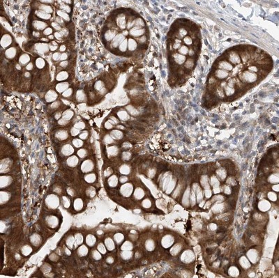 - Immunohistochemistry-Paraffin: TTC38 Antibody [NBP1-82163] - Staining of human colon shows strong cytoplasmic positivity in glandular cells.