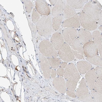 - Immunohistochemistry-Paraffin: TTC38 Antibody [NBP1-82163] - Staining of human skeletal muscle shows no cytoplasmic positivity in myocytes as expected.