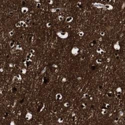 - Immunohistochemical staining of human cerebral cortex shows strong nuclear positivity in neuronal cells and glial cells.