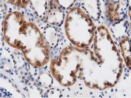 - Immunohistochemical staining of paraffin-embedded Human Kidney tissue within the normal limits using anti-DNAJA2 mouse monoclonal antibody. (Heat-induced epitope retrieval by 10mM citric buffer, pH6.0, 100C for 10min, TA501710, Dilution 1:50)