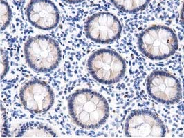 - Immunohistochemical staining of paraffin-embedded Human colon tissue within the normal limits using anti-DNAJA2 mouse monoclonal antibody. (Heat-induced epitope retrieval by 10mM citric buffer, pH6.0, 100C for 10min, TA501710, Dilution 1:50)