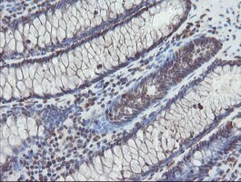 - Immunohistochemical staining of paraffin-embedded human colon tissue within the normal limits using anti-TDO2 mouse monoclonal antibody. (Heat-induced epitope retrieval by 10mM citric buffer, pH6.0, 100°C for 10min, TA504879)