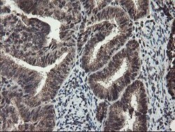- Immunohistochemical staining of paraffin-embedded Adenocarcinoma of Human endometrium tissue using anti-TDO2 mouse monoclonal antibody. (Heat-induced epitope retrieval by 10mM citric buffer, pH6.0, 100°C for 10min, TA504879)