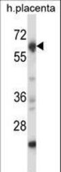 - Mouse Nrbp2 Antibody western blot of human placenta tissue lysates (35 ug/lane). The Nrbp2 antibody detected the Nrbp2 protein (arrow).