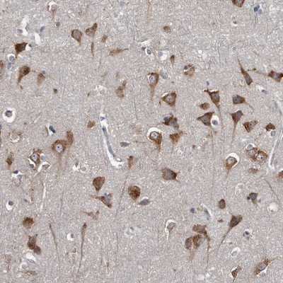 - Immunohistochemistry-Paraffin: Isoleucyl tRNA synthetase Antibody [NBP1-87698] - Staining of human cerebral cortex shows strong cytoplasmic positivity in neuronal cells.