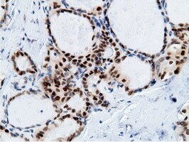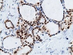 - Immunohistochemical staining of paraffin-embedded Carcinoma of Human thyroid tissue using anti-EPM2AIP1 mouse monoclonal antibody. (Heat-induced epitope retrieval by 10mM citric buffer, pH6.0, 100°C for 10min, TA501797)