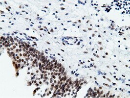 - Immunohistochemical staining of paraffin-embedded human bladder tissue within the normal limits using anti-EPM2AIP1 mouse monoclonal antibody. (Heat-induced epitope retrieval by 10mM citric buffer, pH6.0, 100°C for 10min, TA501797)