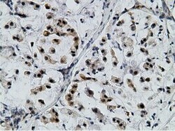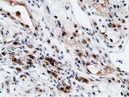 - Immunohistochemical staining of paraffin-embedded Carcinoma of Human kidney tissue using anti-EPM2AIP1 mouse monoclonal antibody. (Heat-induced epitope retrieval by 10mM citric buffer, pH6.0, 100°C for 10min, TA501797)