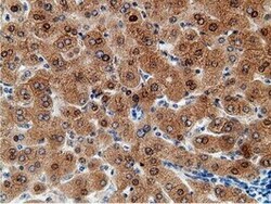 - Immunohistochemical staining of paraffin-embedded human liver tissue within the normal limits using anti-EPM2AIP1 mouse monoclonal antibody. (Heat-induced epitope retrieval by 10mM citric buffer, pH6.0, 100°C for 10min, TA501797)