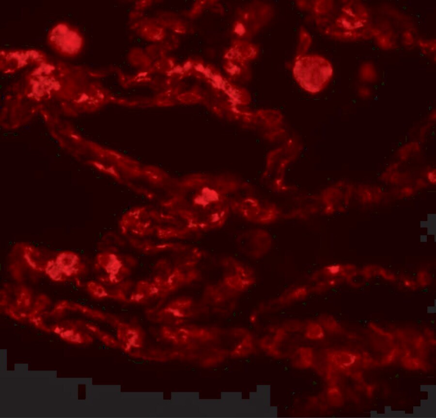 - Immunofluorescence of CCDC69 in human lung tissue with CCDC69 Polyclonal Antibody (Product # PA5-20935) at 20 µg/mL.