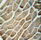 - GPAA1 antibody immunohistochemistry of formalin-fixed and paraffin-embedded human skeletal muscle followed by peroxidase-conjugated secondary antibody and DAB staining.