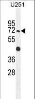 - GPAA1 Antibody western blot of U251 cell line lysates (35 ug/lane). The GPAA1 antibody detected the GPAA1 protein (arrow).