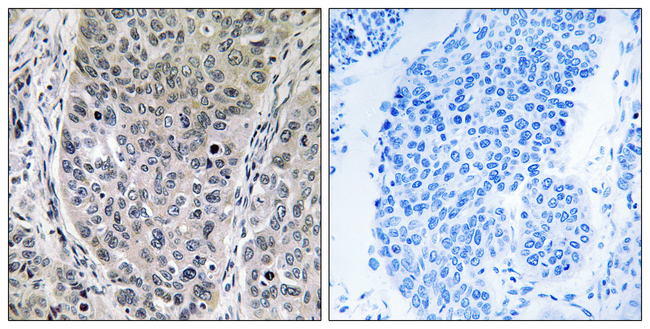 - Immunohistochemistry analysis of paraffin-embedded human lung carcinoma tissue, using BRP16 Antibody. The picture on the right is blocked with the synthesized peptide.
