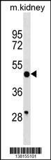 - BRP16 Antibody (Center) (Cat. #AP18500c) western blot analysis in mouse kidney tissue lysates (35ug/lane).This demonstrates the BRP16 antibody detected the BRP16 protein (arrow).