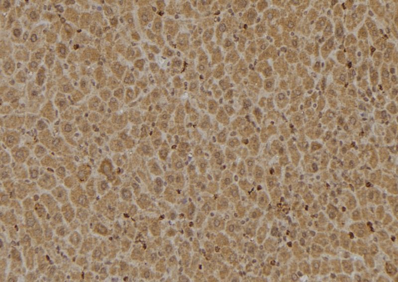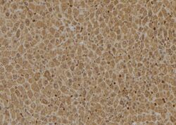 - Immunohistochemistry analysis of paraffin-embedded HGH1 in mouse liver tissue. Antigen retrieval was performed using citrate buffer. Samples were blocked with blocking buffer (1.5 hr, 22°C), incubated with HGH1 polyclonal antibody (Product # PA5-101467) using a dilution of 1:100 (1.5 hr, 22°C), followed by HRP conjugated goat anti-rabbit.