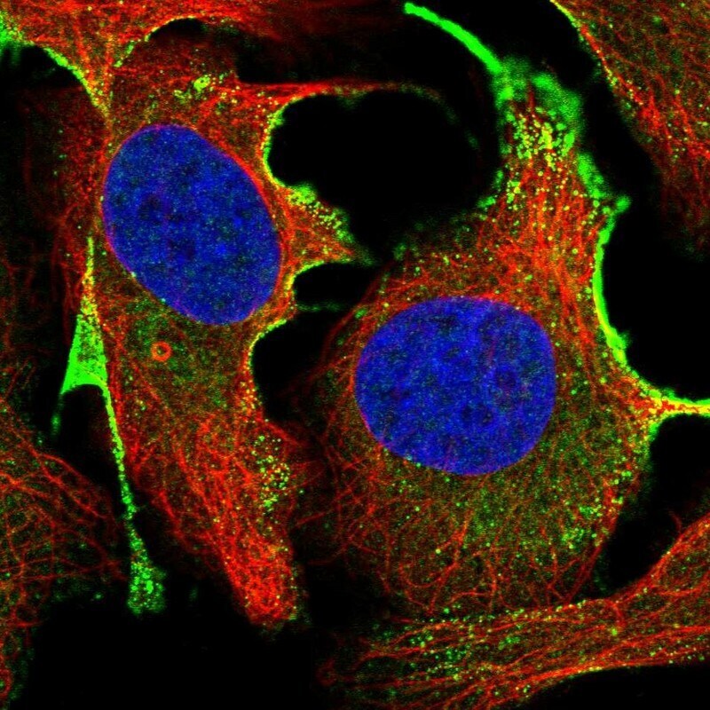 - Immunofluorescent staining of CTDSPL in human cell line U-2 OS shows positivity in vesicles. Samples were probed using a CTDSPL Polyclonal Antibody (Product # PA5-61713).