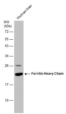 - Human tissue extract (30 ?g) was separated by 12% SDS-PAGE, and the membrane was blotted with Ferritin Heavy Chain antibody [N1C3] (GTX101733) diluted at 1:500.