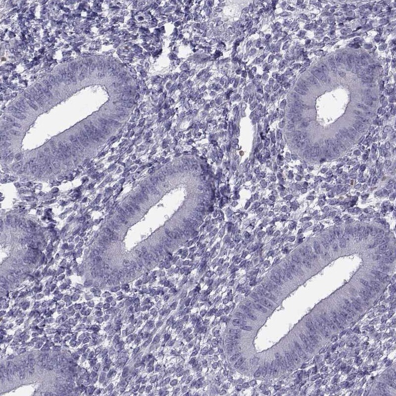 - Immunohistochemical staining of FAM71B in human endometrium using FAM71B Polyclonal Antibody (Product # PA5-58803) shows low expression as expected.