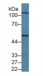 - Western Blot; Sample: Porcine Skeletal muscle lysate; Primary Ab: 2µg/ml Rabbit Anti-Human MYPN Antibody Second Ab: 0.2µg/mL HRP-Linked Caprine Anti-Rabbit IgG Polyclonal Antibody