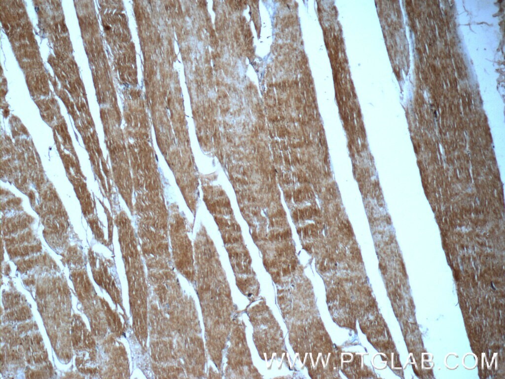 - Immunohistochemistry of paraffin-embedded human skeletal muscle tissue slide using 16180-1-AP ( MYPN-Specific Antibody) at dilution of 1:50 (under 40x lens).