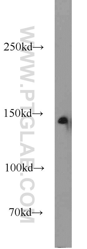 - HeLa cells were subjected to SDS PAGE followed by western blot with 16180-1-AP (MYPN-Specific antibody) at dilution of 1:100 incubated at room temperature for 1.5 hours.