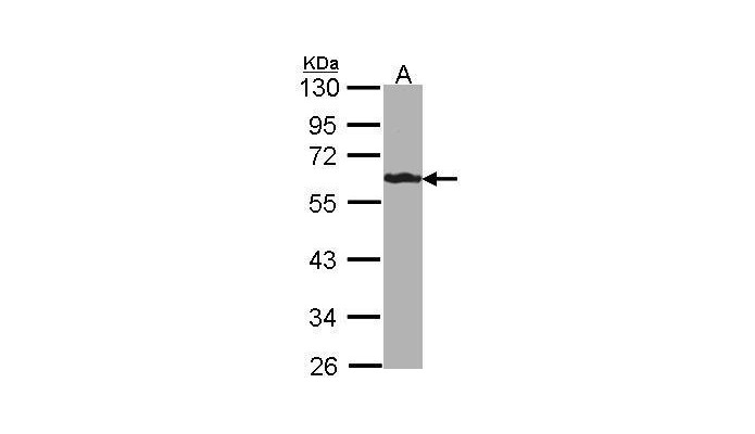 - Sample(30 ?g of whole cell lysate)A:HeLa S3 10% SDS PAGEOAGA00360 diluted at 1:1500