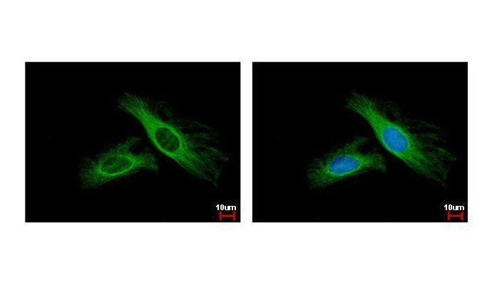 - FBL6 antibody [C3], C-term detects FBXL6 protein at cytoplasm by immunofluorescent analysis. Sample: HeLa cells were fixed in ice-cold MeOH for 5 min.Green: FBXL6 protein stained by FBL6 antibody [C3], C-term (OAGA00360) diluted at 1:500.Blue: Hoechst 33342 staining.
