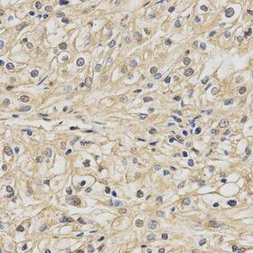 - Immunohistochemistry of paraffin-embedded human kidney using NDUFA13 antibody at dilution of 1:200 (x400 lens)