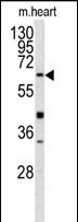 - Western blot analysis of GGTLA1 antibody (N-term) (GTX81477) in mouse heart tissue lysates (35μg/lane). GGTLA1 (arrow) was detected using the purified Pab.