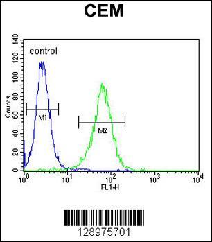 - NXPH4 Antibody (C-term) (Cat. #AP11180b) western blot analysis in CEM cell line lysates (35ug/lane).This demonstrates the NXPH4 antibody detected the NXPH4 protein (arrow).