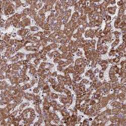 - Immunohistochemical analysis of CES7 in human liver using CES7 Polyclonal Antibody (Product # PA5-61561) shows strong cytoplasmic positivity in hepatocytes.