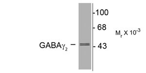 - Western blot of 10 µg of rat hippocampal lysate showing immunolabeling of the ~46k y2-subunit of the GABAA-R.