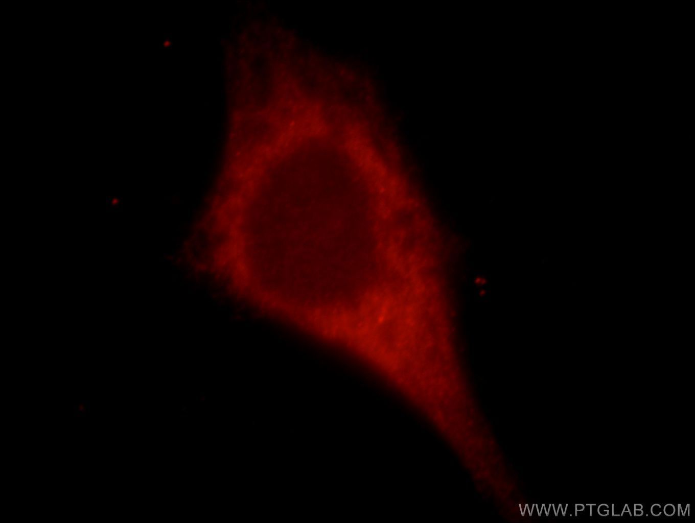 - Immunofluorescent analysis of HepG2 cells, using KIAA0513 antibody 21478-1-AP at 1:25 dilution and Rhodamine-labeled goat anti-rabbit IgG (red).