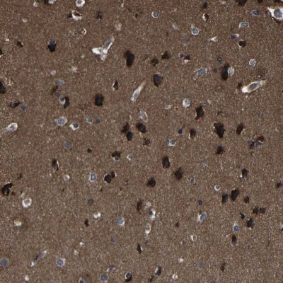 - Immunohistochemistry-Paraffin: KIAA0513 Antibody [NBP1-86470] - Staining of human cerebral cortex shows high expression.