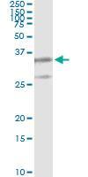 - Western blot of PSMB8 expression in transfected 293T cell line by PSMB8 monoclonal antibody (M01), clone 1B3.