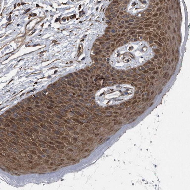 - Immunohistochemical staining of human vulva/anal skin shows moderate cytoplasmic positivity in squamous epithelial cells.This validation was performed by Protein Atlas and the presentation of data is for informational purposes only.
