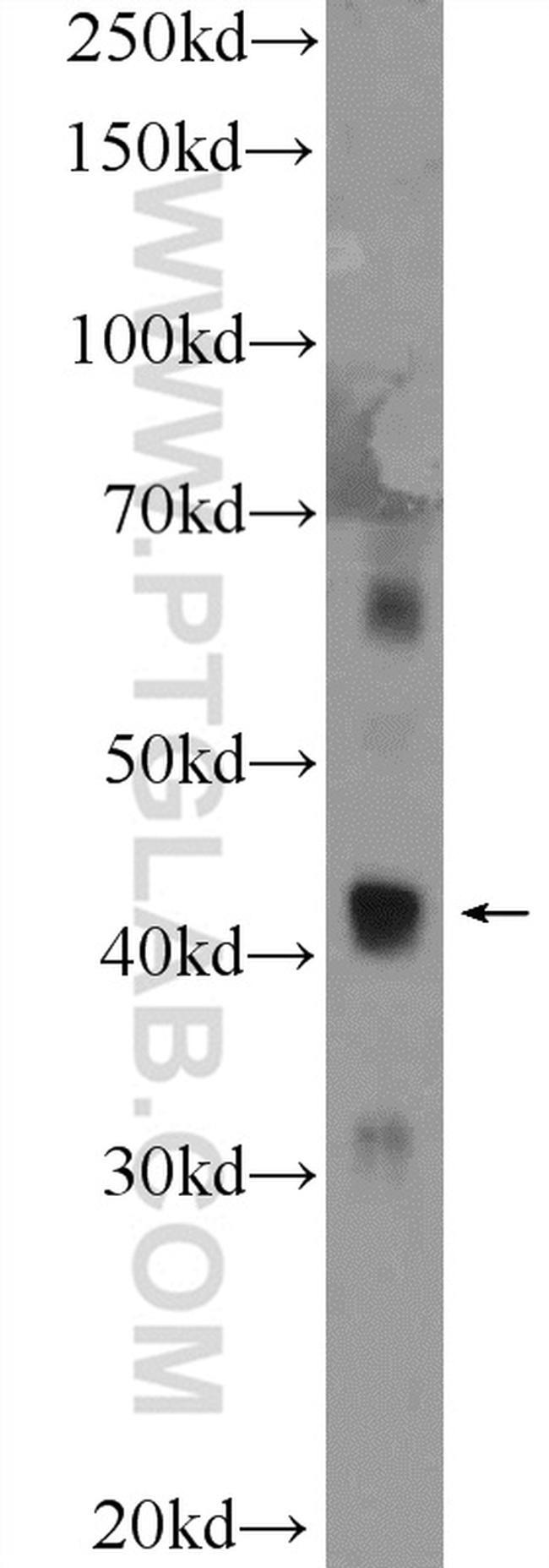 - Mouse brain tissue were subjected to SDS PAGE followed by western blot with 25447-1-AP (C15orf58 Antibody) at dilution of 1:300 incubated at room temperature for 1.5 hours.