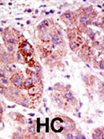 - Formalin-fixed and paraffin-embedded human hepatocellular carcinoma tissue reacted with the USP7 polyclonal antibody (Cat # PAB4186) , which was peroxidase-conjugated to the secondary antibody, followed by AEC staining . This data demonstrates the use of this antibody for immunohistochemistry; clinical relevance has not been evaluated . HC = hepatocarcinoma .