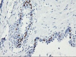 - Immunohistochemical staining of paraffin-embedded human prostate tissue within the normal limits using anti-FOXI1 mouse monoclonal antibody. (Heat-induced epitope retrieval by 10mM citric buffer, pH6.0, 100°C for 10min, TA800145)