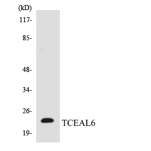 - Western blot analysis of the lysates from HUVECcells using TCEAL6 antibody.