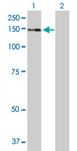 - Western Blot analysis of ZNF507 expression in transfected 293T cell line (H00022847-T01) by ZNF507 MaxPab polyclonal antibody.Lane 1: ZNF507 transfected lysate(104.83 KDa).Lane 2: Non-transfected lysate.