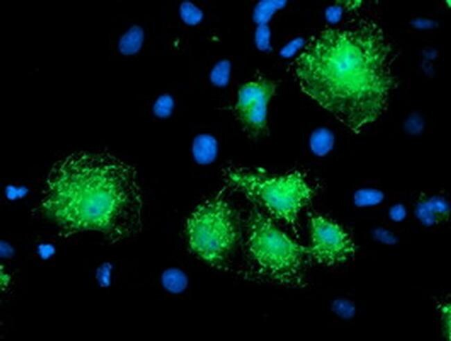 - Anti-KATNB1 mouse monoclonal antibody (TA503807) immunofluorescent staining of COS7 cells transiently transfected by pCMV6-ENTRY KATNB1(RC201852).