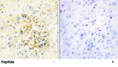 - Immunohistochemistry analysis of paraffin-embedded human prostate tissue using PMEPA1 polyclonal antibody (Cat # PAB17430).Peptide "+" means "with peptide blocking".