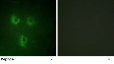 - Immunofluorescence analysis of HUVEC cells, using PMEPA1 polyclonal antibody (Cat # PAB17430).Peptide "+" means "with peptide blocking".