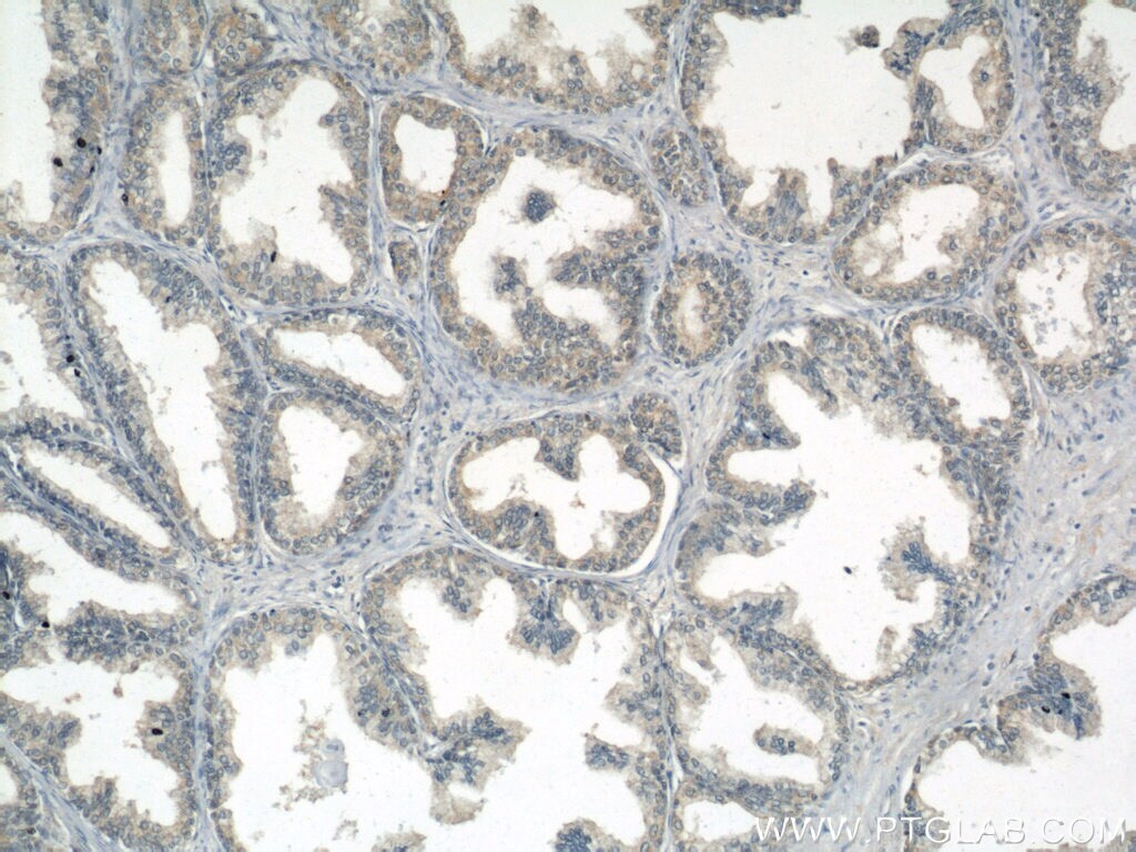 - Immunohistochemistry of paraffin-embedded human prostate hyperplasia using 16521-1-AP (PMEPA1 antibody) at dilution of 1:50 (under 10x lens).