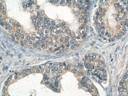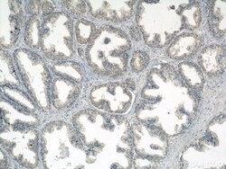 - Immunohistochemistry of paraffin-embedded human prostate hyperplasia using 16521-1-AP (PMEPA1 antibody) at dilution of 1:50 (under 40x lens).