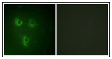 - Immunofluorescence analysis of HuvEc cells, using TMEPA Antibody. The picture on the right is treated with the synthesized peptide.